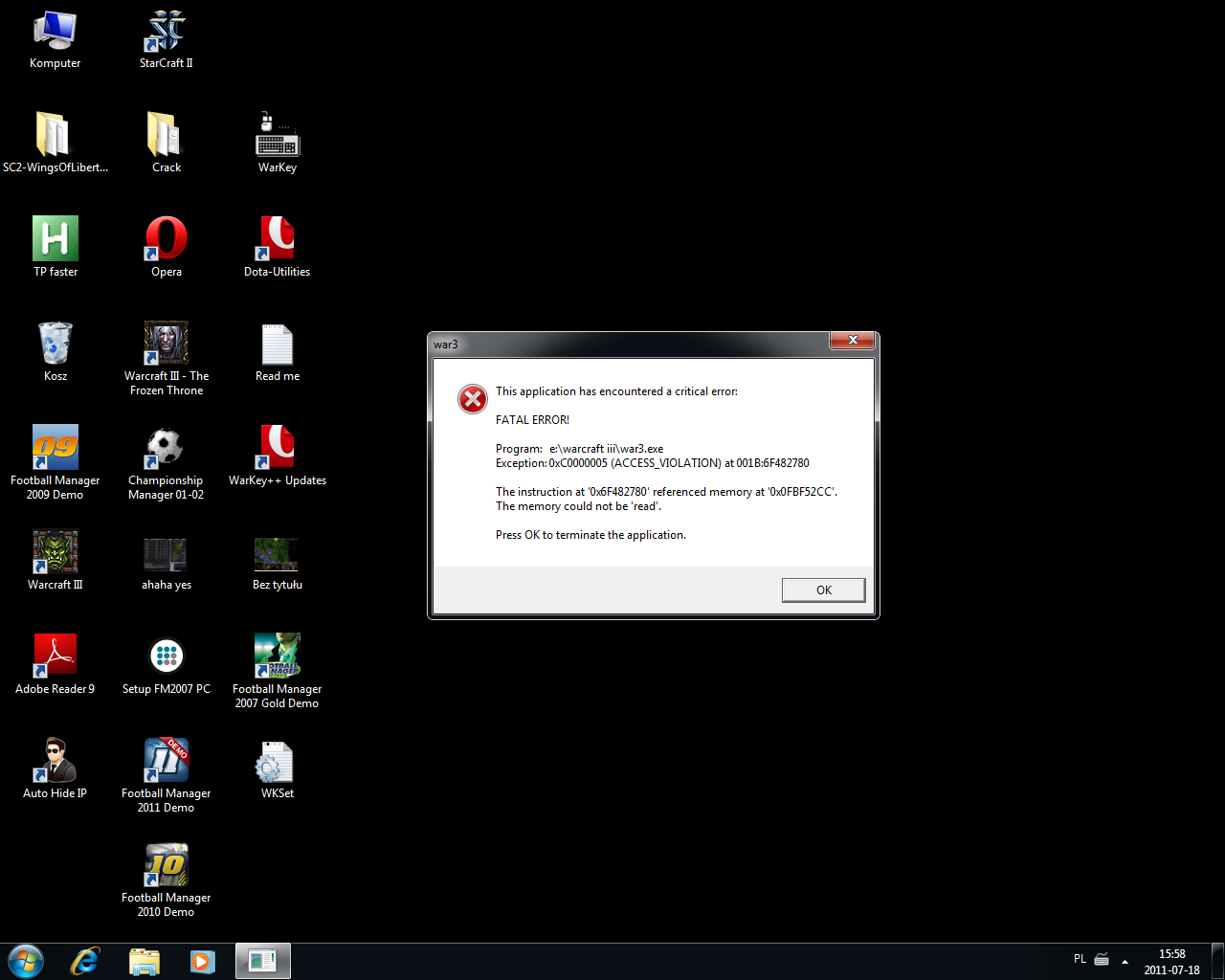 WC3 is a bitch. I dont know any game which relies that hard on a smooth running hardware. The slightest timing problem will crash WC3 or the whole pc.