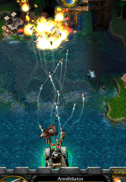 I also think the damage per rocket should change with lvl instead of multiplying them. 36 low-dmg rockets is more like creepkill (and even for them 200 is no problem). My version would look like this: 8 or 12 rockets, 6400 overall dmg at lvl5. And don't you think it's a bit low? I have to check it but probably frost tank's ulti pwns this. Maybe 30-50% splash would balance this (and it fits the Gazlow style too :mrgreen: )