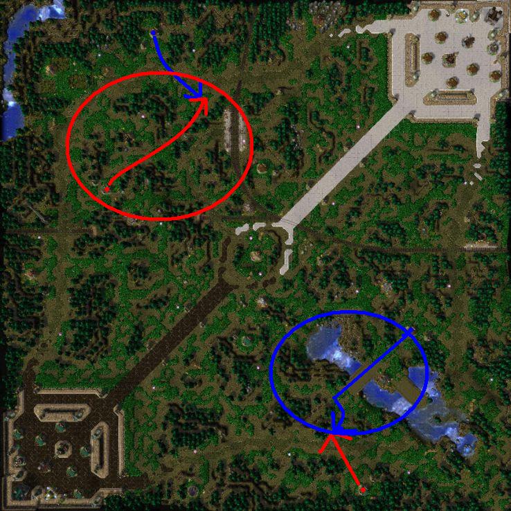 But on the other hand, if one is (DF on the upper, LF on the sub lane) it is hard to reach the shop, especially for ground tanks: While the bridge leads dircetly from the shop to the control point on the sub, on the upper lane the forest forces a ground unit has to make curves. The effect is that the way becomes longer, so the shopping (ground) tank is an easy target, at least easier as on the sub lane.
