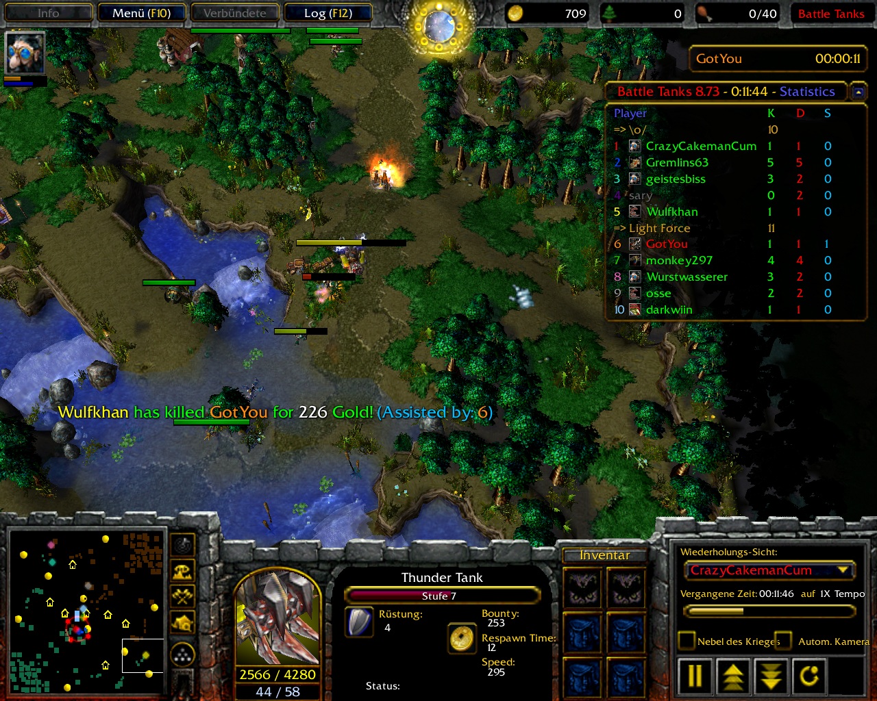 I played a league game (http://league.btanks.net/game.php?gameid=11239) and saw a strange 'assist': Someone was killed and got a support point and bonus gold for his own death. I think it was because he took damage of his own mines before.