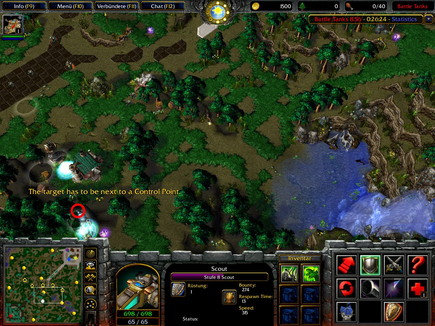 Portet man zum KP per KP-Teleport und visiert als Zielpunkt den rot markierten Punkt an, kommt man nicht am KP raus sondern an der Stelle wo der Tank auf dem Screenshot ist